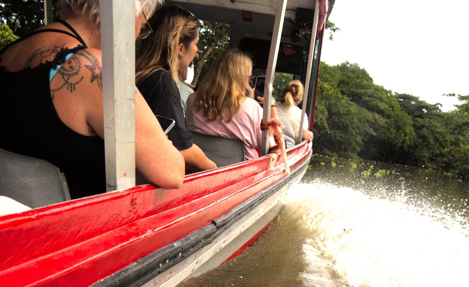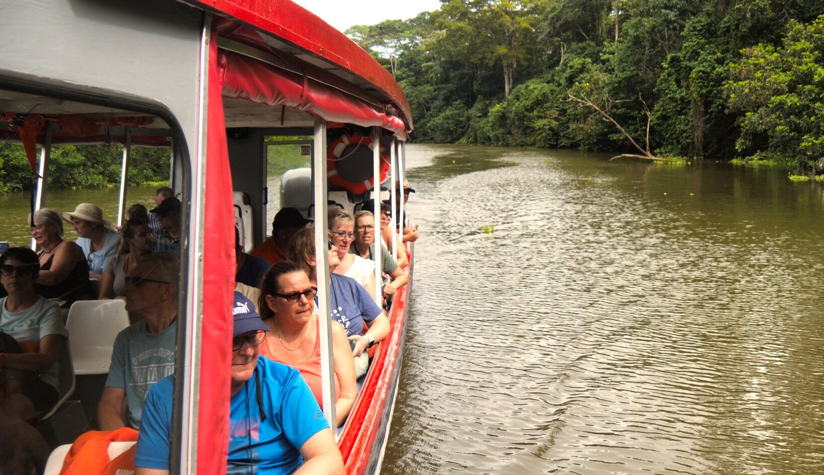 Mit dem Riverboat durch den Jungel. Faultiere, Affen, Krokodile und mehr. Wir suchen Tiere in freier Wildbahn.