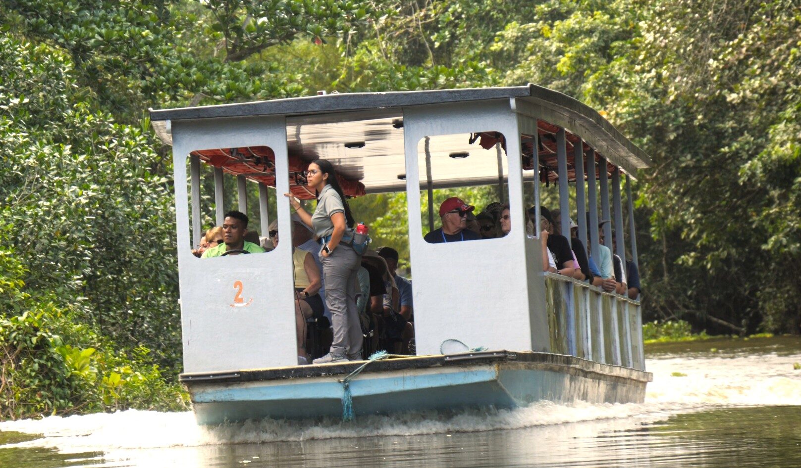 Gestärkt, geht es weiter zu den Tortuguero-Kanälen in Moin, wo unser RiverBoat und der Kapitän auf uns warten. Mit dem Boot erkunden wir die Flüsse des malerischen Küstengebiets und halten dabei stets Ausschau nach den typischen Wildtieren der Region. Krokodile, Kaimane, Leguane, diverse Vogelarten und mehr.